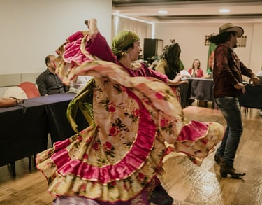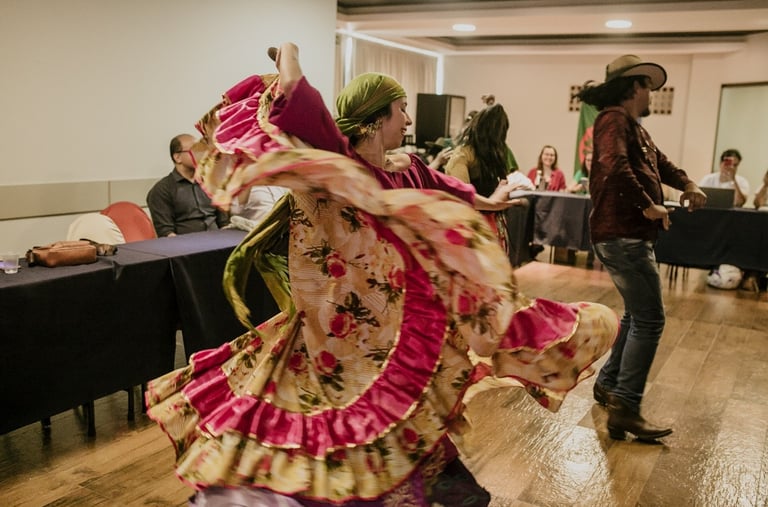 Os artistas de origem Calon, Jaque Roque e Marcos Gattas, em apresentação cultural na oficina que ocorreu em Rondonópolis, no mês de setembro de 2023. Foto: Ju Queiroz.