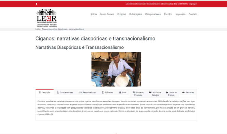 Em parceria com o Laboratório de Estudos sobre Etnicidade, Racismo e Discriminação da USP participamos do projeto “Ciganos: narrativas diaspóricas e transnacionalismo”.