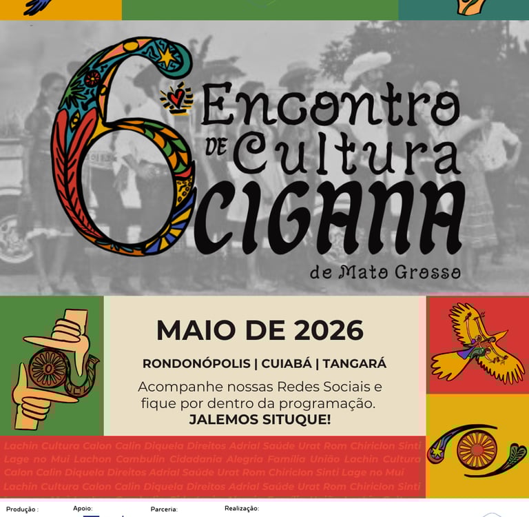 O Encontro de Cultura Cigana de Mato Grosso é um projeto guarda-chuva, que ocorre ao longo do ano, de forma presencial e virtual, nos três maiores municípios com comunidades ciganas de MT (Rondonópolis, Tangará da Serra e Cuiabá).
